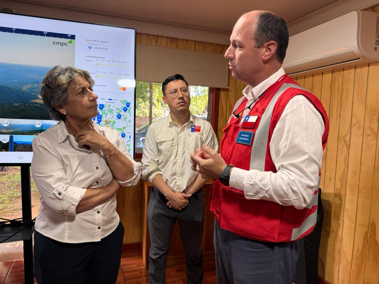 Ministra MOP visita oficina CMPC de Capitán Pastene para reforzar coordinación público-privada en combate a incendios