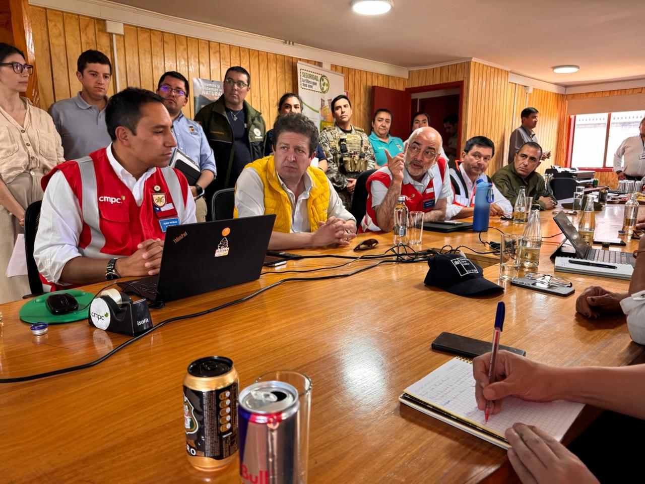 En las oficinas de CMPC en Capitán Pastene, comuna de Lumaco, se llevó a cabo esta tarde una reunión de coordinación en la que participaron la ministra de Obras Públicas, Jessica López, designada como enlace para los incendios de La Araucanía por el presidente Gabriel Boric; el alcalde de Lumaco, Richard Leonelli, y el Vicepresidente de Operaciones Forestales de CMPC, Fernando Hasenberg.
